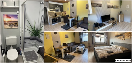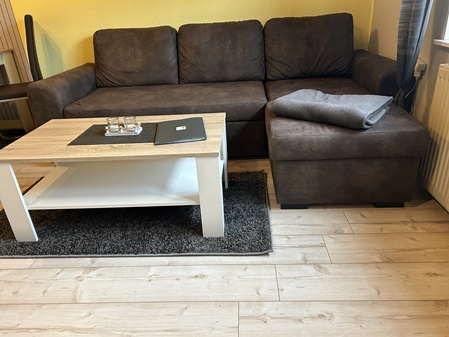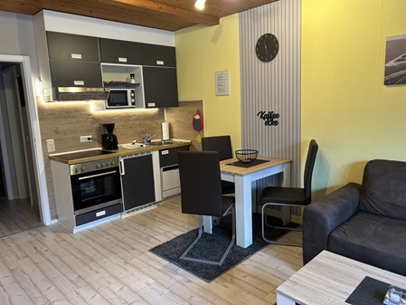 Sie bietet Ihnen eine voll ausgestattete Wohnküche, ein gemütliches Wohnzimmer,